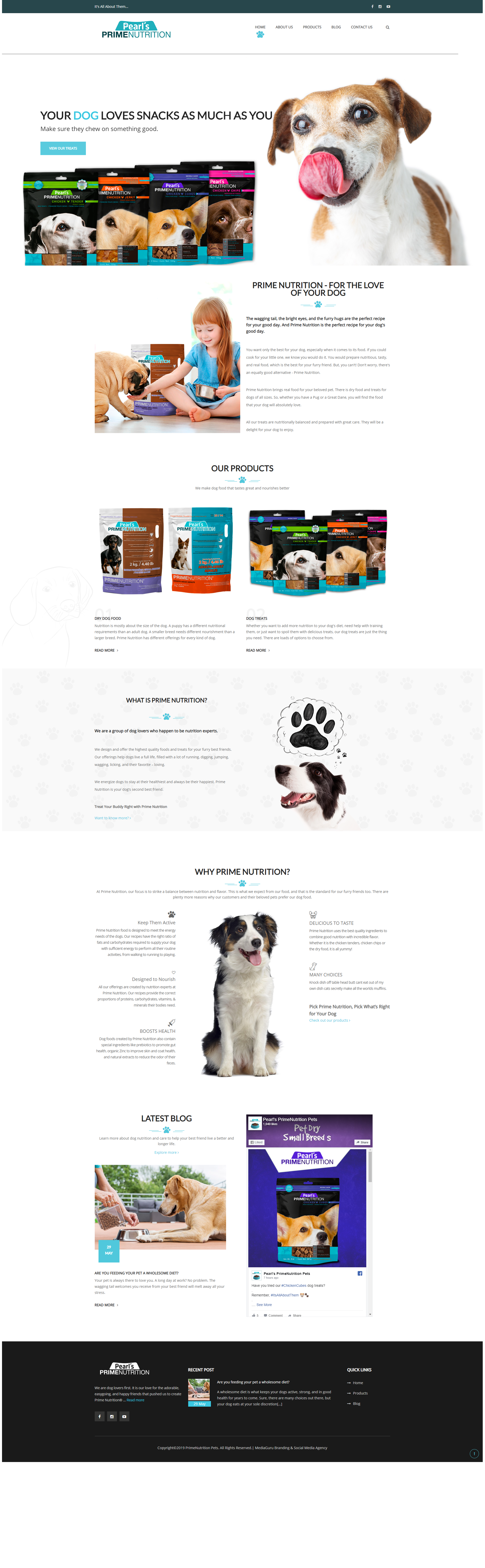 Página web realizada para la marca Pearl's Prime Nutrition Pets, como cliente de MediaGuru Branding & Social Media Agency.