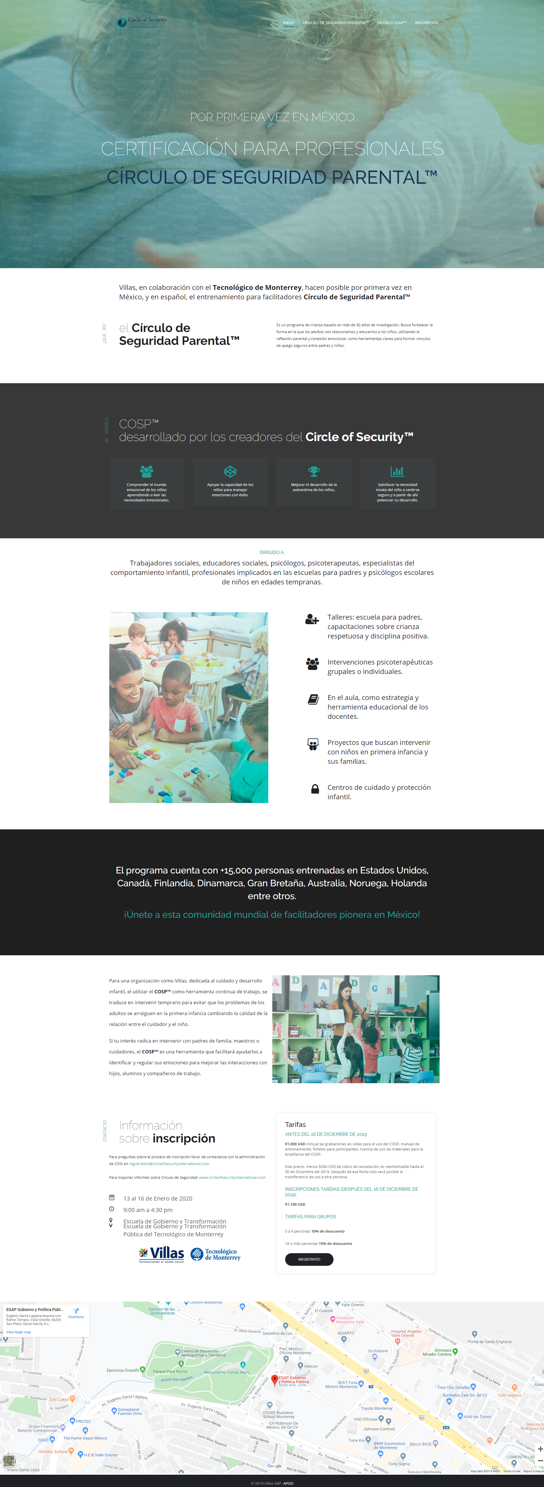 Página web realizada para promoción de la certificación para profesionales de Círculo de Seguridad Parental™ organizado por Villas ABP, el Tec de Monterrey y Circle of Security.